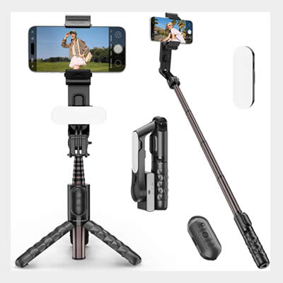 KOSCHEAL Estabilizador Celular, Gimbal para Celular 1 Eixo com Luz de Preenchimento e Controle Remoto, Rotação 360° para Android e iPhone